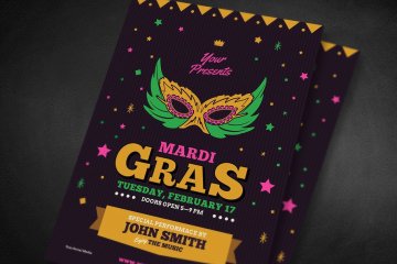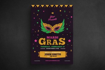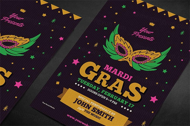 图穷联素材库 » 狂欢节面具化妆舞会活动海报传单模板 Mardi Gras Event flyer