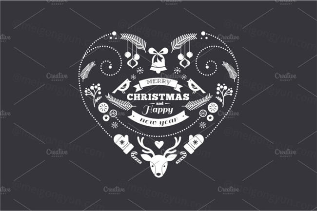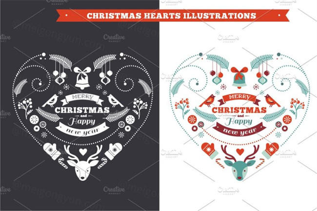 图穷联素材库 » 圣诞节心形创意图形 Christmas Heart Cards , Backgrounds