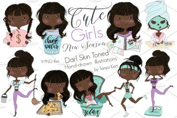 图穷联素材库 » 黑皮肤卡通女孩素材 Dark skin toned Planner girls