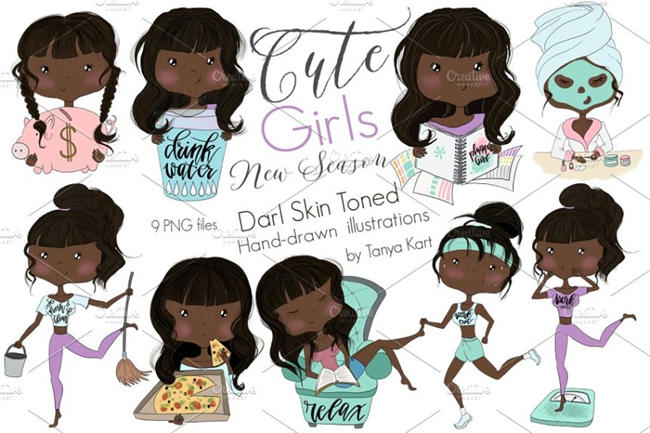 黑皮肤卡通女孩素材 Dark skin toned Planner girls