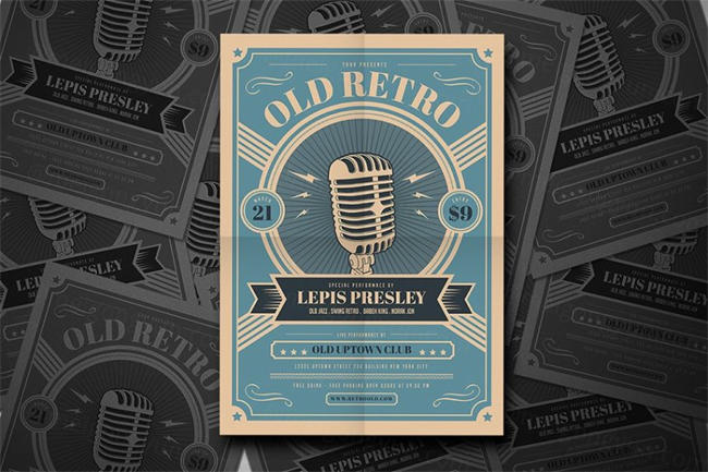 旧的经典的音乐海报模板 Old Retro Music Flyer