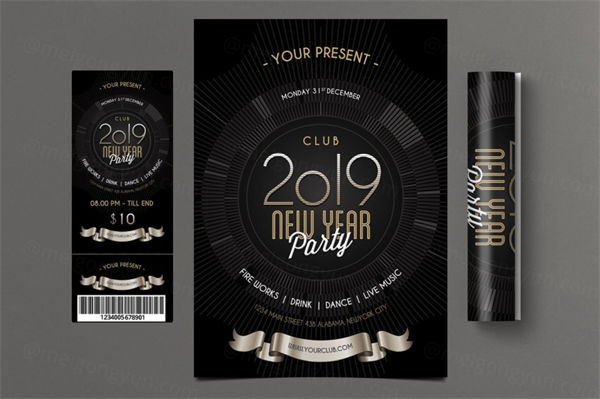 图穷联素材库 » 新年盛大街倒计时party派对黑金质感海报