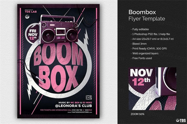 图穷联素材库 » 怀旧录音机扬声器海报模版 Boombox Flyer