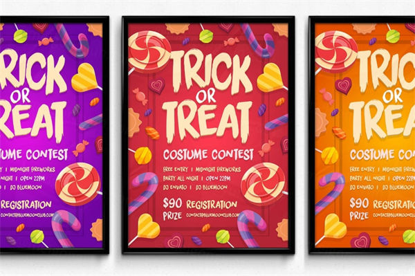 高品质的时尚清新可爱的万圣节糖果儿童节海报candy-halloween