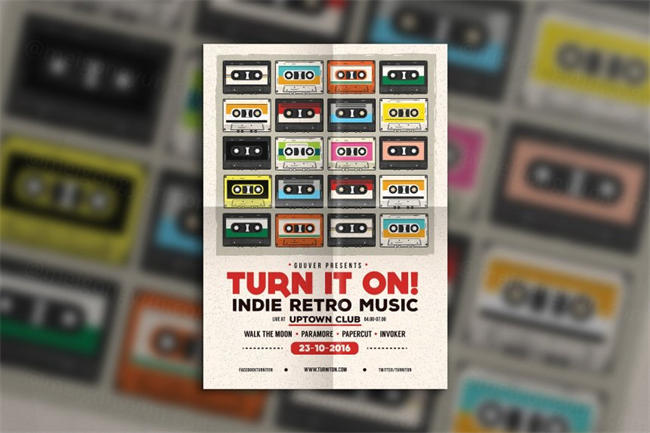 图穷联素材库 » 怀旧磁带主题海报模板 The Radio Tape Flyer