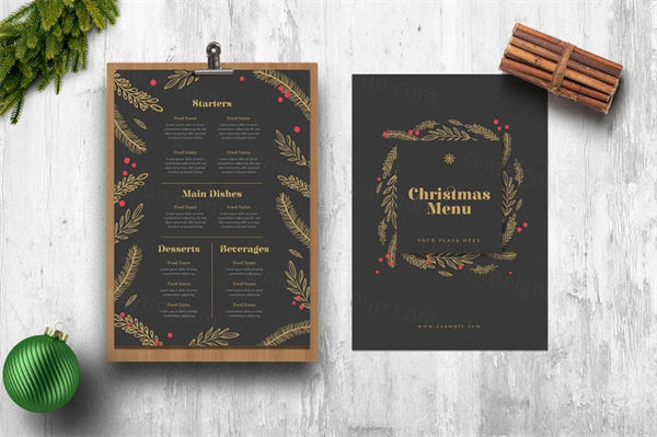 图穷联素材库 » 黑金质感的圣诞节新年DM宣传单holiday-christmas