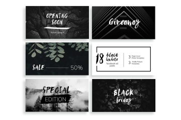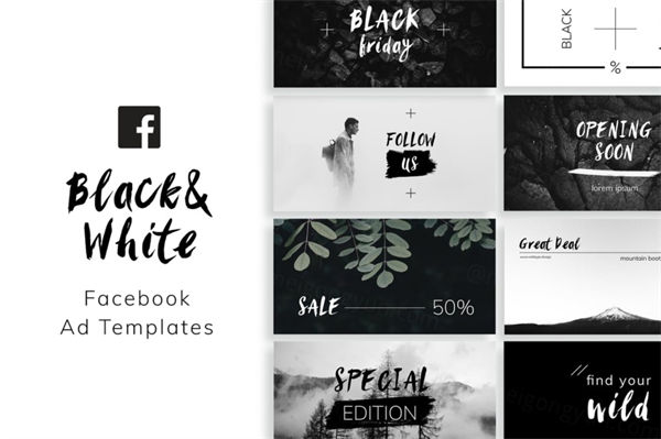 图穷联素材库 » 时尚高端黑白配色的社交媒体海报black-white-facebook