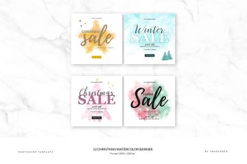 图穷联素材库 » 圣诞节水彩海报 Christmas Watercolor Banner