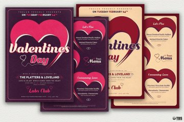 图穷联素材库 » 情人节海报模板v9 Valentines Day Flyer Menu