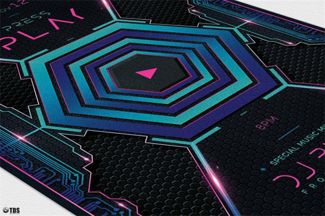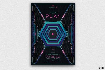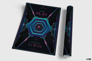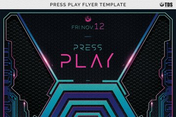 图穷联素材库 » 科幻游戏海报模板 Press Play Flyer