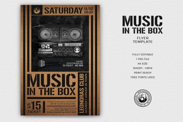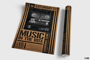 图穷联素材库 » 怀旧音乐海报模板 Music in the Box Flyer