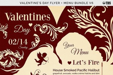 图穷联素材库 » 情人节菜单模板 Valentines Day Flyer Menu