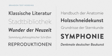 布兰登的文本是著名的Brandon Grotesque type家族的伴侣。它具有比怪诞版本更高的X高度,并对长文本、小尺寸和屏幕进行了优化。这个无衬线类型的六个权重加上斜体斜体的家族是由汉尼斯冯D·胡伦于2012设计的。受二十世纪二三十年代流行的几何式无衬线字体的影响,这些字体基于几何形式,这些几何形式经过了光学校正,提高了易读性。布兰登文本具有一个温暖的触摸功能的外观,并完美地与Brandon Grotesque一起工作。它是手动提示和优化屏幕,所以它将是一个不错的选择,网站,电子书或应用程序。更多…