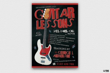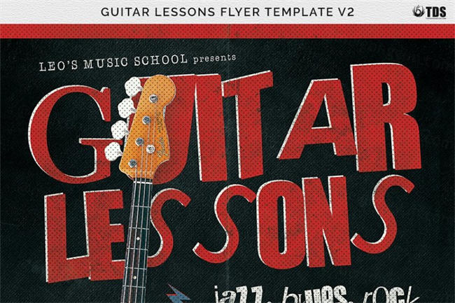 图穷联素材库 » 吉他课程传单PSD模板 V2 Guitar Lessons