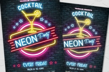 霓虹灯鸡尾酒会宣传单 Neon Cocktail Party Flyer