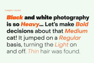 经常调整体重,以适应小尺寸的正文。Sans物体有7个重量,每个重量都直立和倾斜。