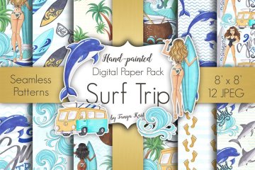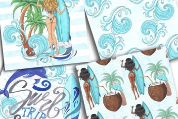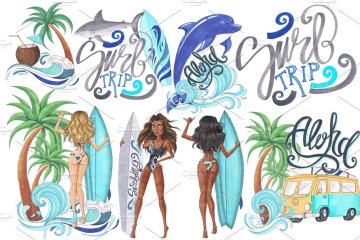 抽象热带海滩元素插画 Surf Trip Hand-painted Collection