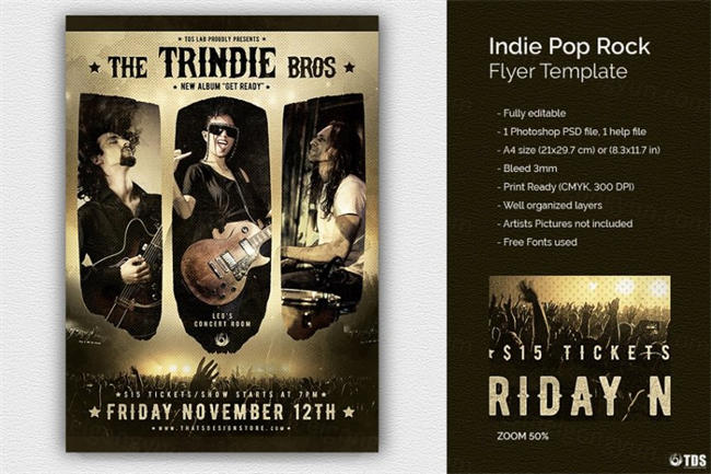 图穷联素材库 » 黑金色流行音乐海报模版 Indie Pop Rock Flyer