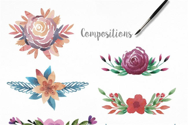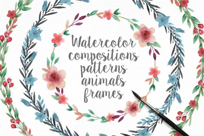 图穷联素材库 » 水彩花卉框架和背景纹理素材 Watercolor Frames
