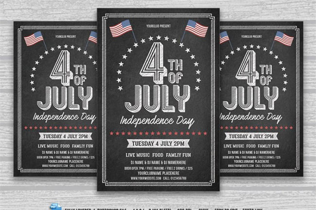 粉笔黑板风格的美国独立日纪念海报 July 4th Chalk Flyer