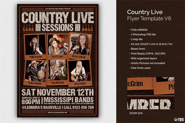 图穷联素材库 » 乡村音乐会海报模版 Country Live Flyer