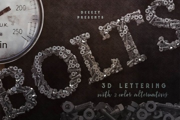 工业质感的高分辨率金属螺栓建筑风格英文字母metalic-bolts