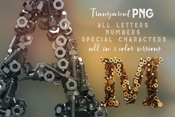 图穷联素材库 » 工业质感的高分辨率金属螺栓建筑风格英文字母metalic-bolts