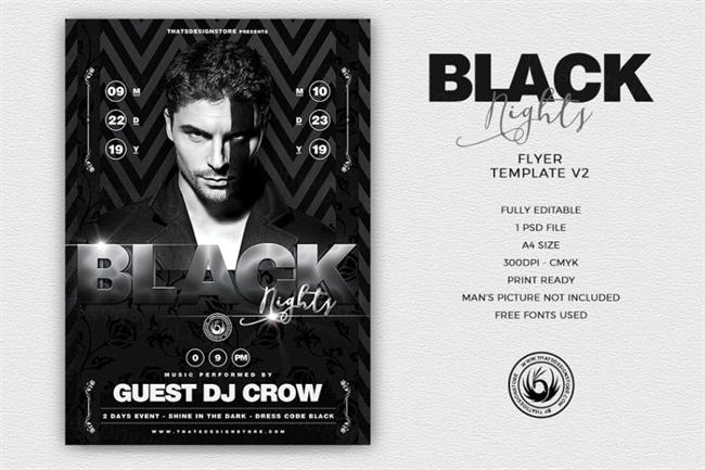 黑白夜店活动广告海报模版 Black Nights Flyer