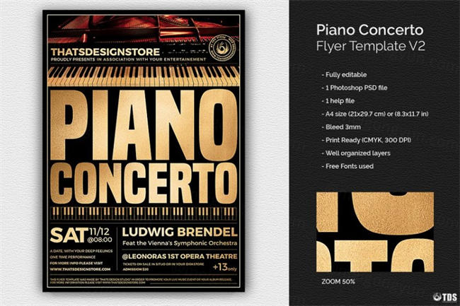 图穷联素材库 » 钢琴演奏会活动海报模版 Piano Concerto Flyer Template