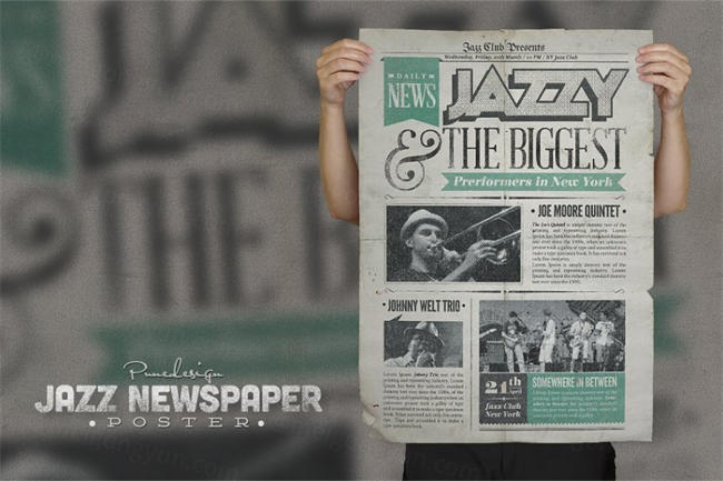 图穷联素材库 » 爵士经典报纸效果的海报模版 Jazz Vintage Newspaper