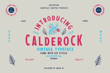 Calderock是一种无衬线字体,精心设计而成。也适用于品牌,T恤,结婚请柬,复古设计,徽标和任何项目。两种样式使您可以轻松设计所有内容,并有插图奖励以使设计更好。