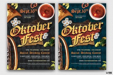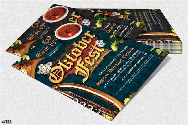 图穷联素材库 » 慕尼黑啤酒节传单海报模版 Oktoberfest Flyer