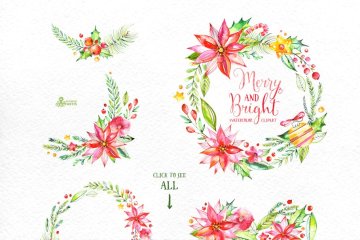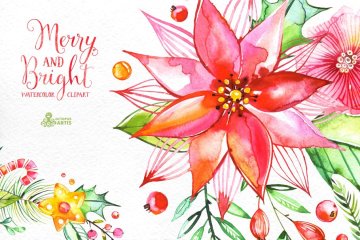 图穷联素材库 » 婚礼和明亮的水彩素材 Merry And Bright. Watercolor