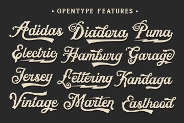 多种标准的连字,备用字符以及四种不同的砝码为您提供了独特的设计选择!