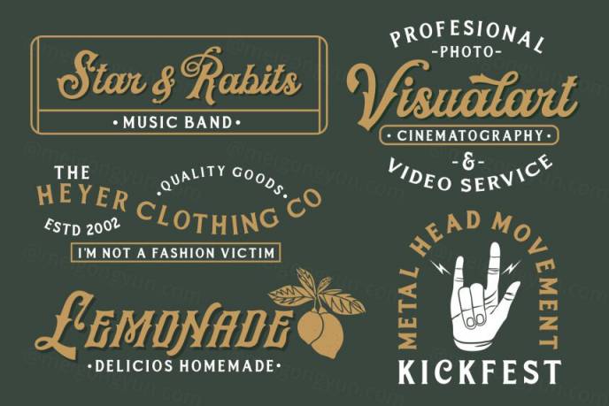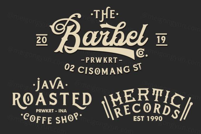 Raightone字体具有四种不同的风格,具有复古感,非常适合产品徽标,品牌项目,标题,海报,包装,服装品牌徽标,复古设计等。