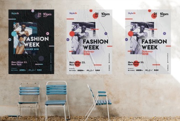 时尚高端的新孟菲斯风格时装周海报宣传单