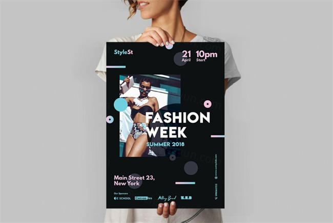 图穷联素材库 » 时尚高端的新孟菲斯风格时装周海报宣传单
