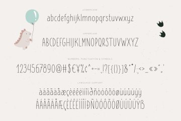你好!我很高兴介绍我的字体“小恐龙”!小恐龙将非常适合书籍,贺卡,玩具,海报,婴儿服装,图画书或任何需要乐趣和幸福的外观!