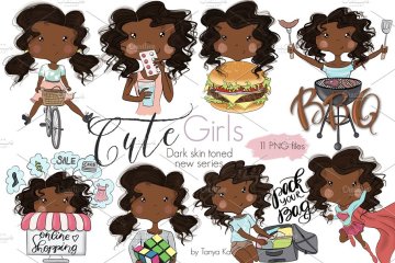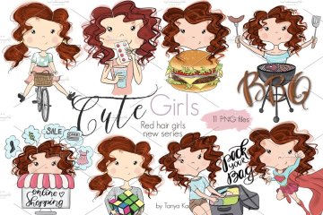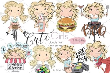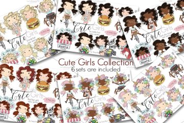 可爱的卡通女孩和独角兽女孩集合 Cute Girls Unicorn Girl