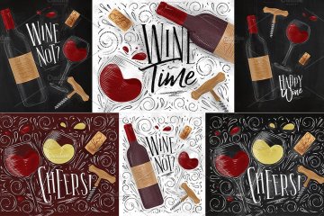 经典的红酒海报模版 Vintage Wine Posters