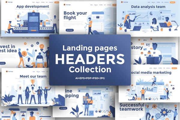 各种主题时尚简约多用途着陆页banner海报landing-page