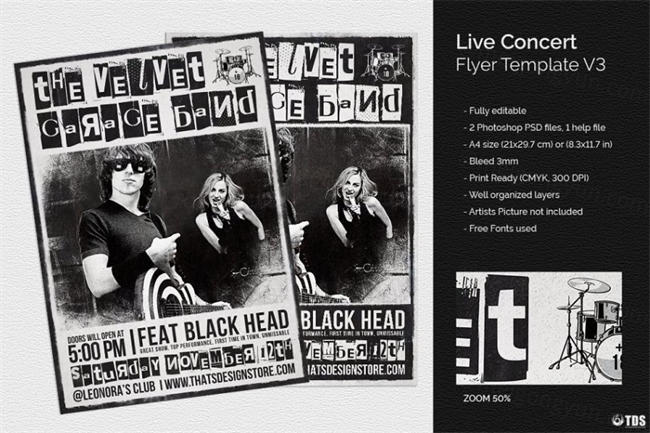 图穷联素材库 » 流行音乐概念海报模板 Live Concert Flyer