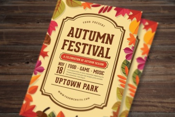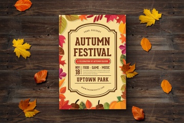 图穷联素材库 » 时尚秋天树叶枫叶落叶海报宣传单 autumn-festival