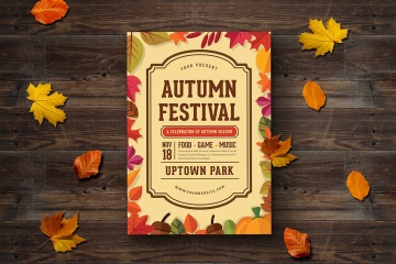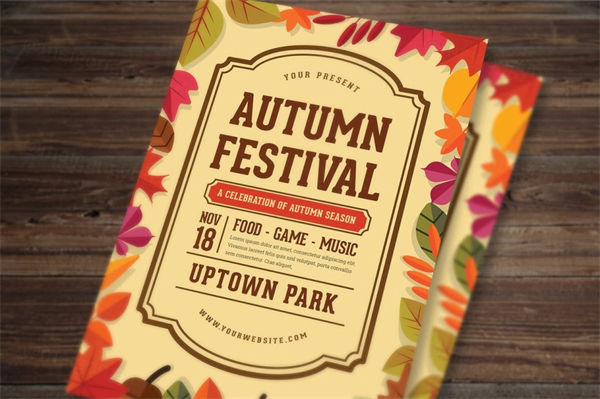 时尚秋天树叶枫叶落叶海报宣传单 autumn-festival