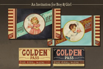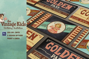 图穷联素材库 » 复古的儿童孩子生日会邀请函邀请卡