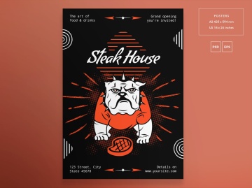 图穷联素材库 » 个性矢量牛排烧烤烤肉BBQ海报