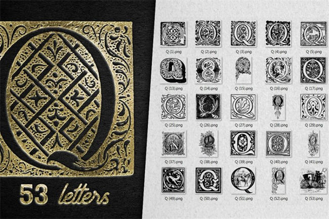 图穷联素材库 » 经典奢华感觉的字母图形 Vintage Letter Q Decorative Alphabet