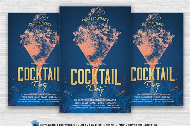 图穷联素材库 » 鸡尾酒会传单海报模板 Cocktail Party Flyer