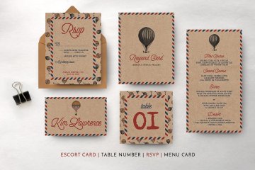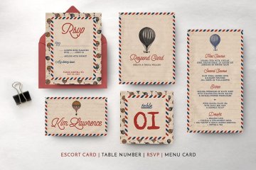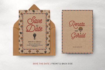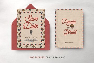 经典的旅游主题海报邀请函模板 Vintage Travel Wedding Suite