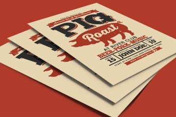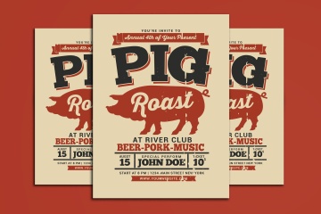 篝火烧烤晚会活动宣传创意海报传单设计模板 Pig Roast Event Flyer